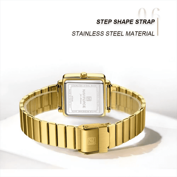 El NF5048 presenta una elegante caja cuadrada de 26 mm que combina perfectamente estilos urbanos clásicos y modernos. El proceso de revestimiento de iones de vacío ecológico garantiza una superficie suave y brillante, que muestra una artesanía exquisita.