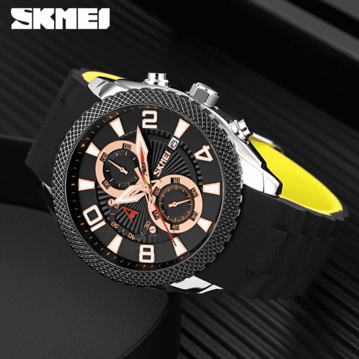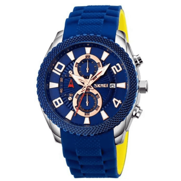 Reloj deportivo de moda SKMEI, esfera de cuatro pantallas, correa de silicona de doble tono, reloj de cuarzo de estilo empresarial resistente al agua con personalidad 9269